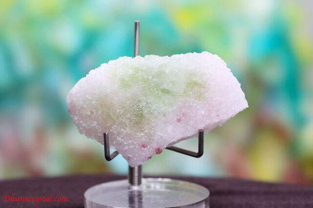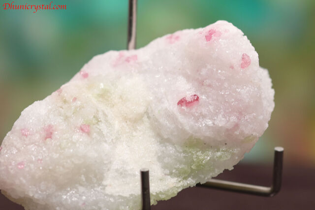 真っ白な母岩にスピネルと緑のパーガサイトが仲良く結晶した、愛らしい鉱物です。