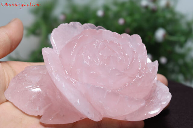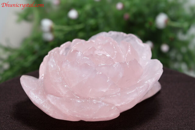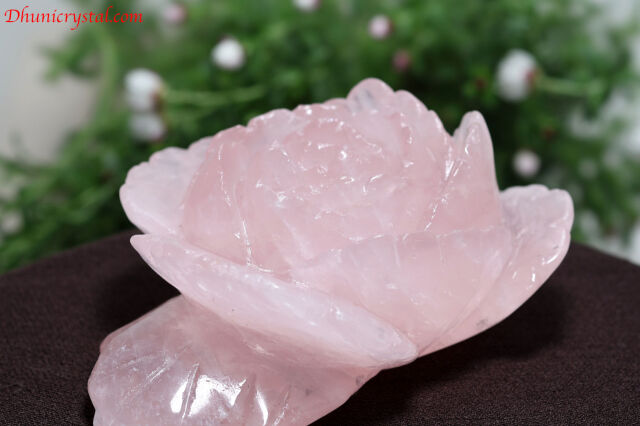 石職人の巧みな技が生み出した、美しいローズクォーツの薔薇カービングです。