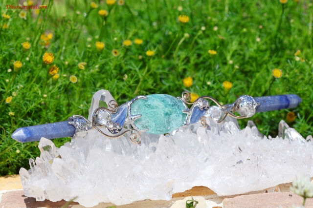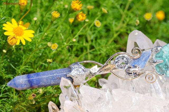 デュモルチェライトは別名「ブルーガーデン」と呼ばれます。このワンド全体の水辺のような美しいエナジーの呼び名に相応しい石です。