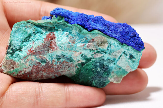 アズライトは美しい藍色をした鉱物で、和名では藍銅鉱と呼ばれる銅の二次鉱物です。