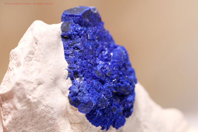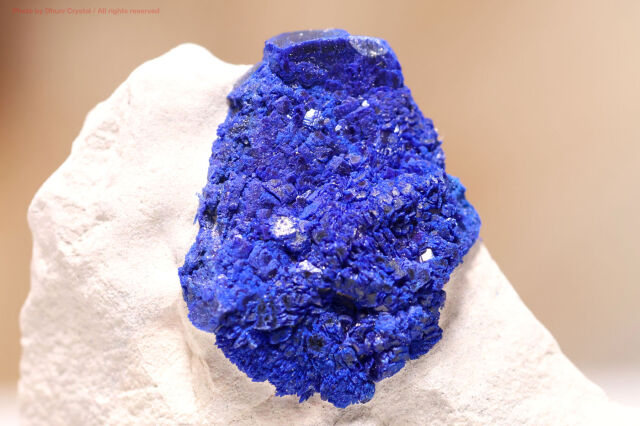 天然で円状に成長した珍しいアズライトです。アズライトは世界中のあちこちで色々な形状で産出されますが、太陽の様にまん丸に結晶しているのはオーストラリア産だけです。