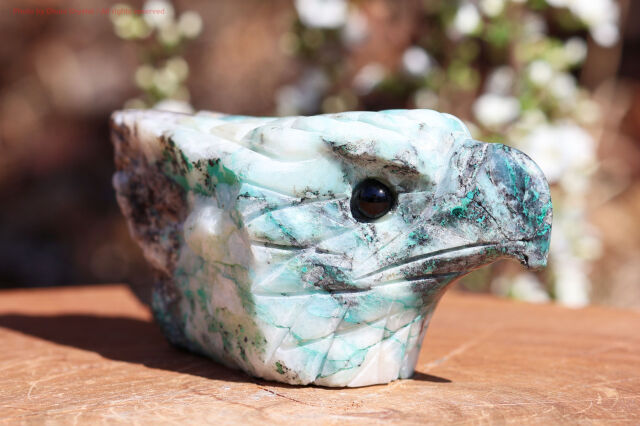 そのクリソコラを、イーグルの姿に彫刻した一点ものの天然石彫刻です。