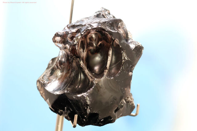 オブシディアンは世界中の火山帯から産出され、叩くと貝状に割れて鋭利な刃先となることから古代では石器ナイフ、槍などの材料として使われていました。