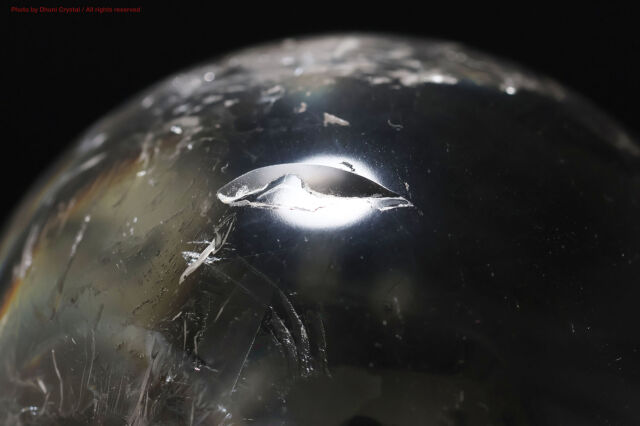 内部のクラックに光が差し込むことで虹が現れます。