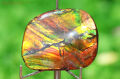 この現象は、光の反射ではなく層の厚みと構造による干渉によって起こるもので、見る角度によって色彩が変化するのが特徴です。