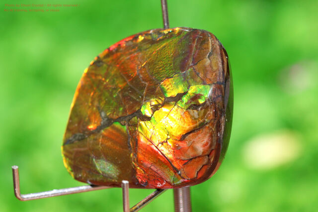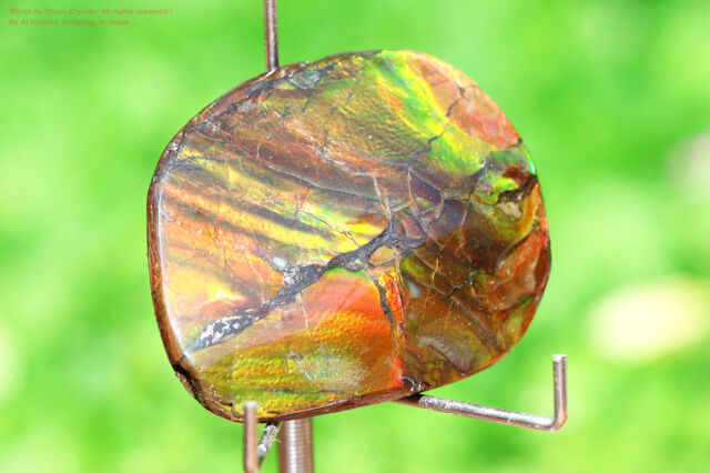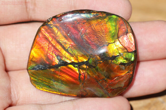 また、アンモ"ラ"イトはモース硬度が約3.5~8と比較的低く、乾燥や衝撃に弱いため、樹脂コーティングやダブレット加工などが施されます。こちらも樹脂コーティング済みとなります。