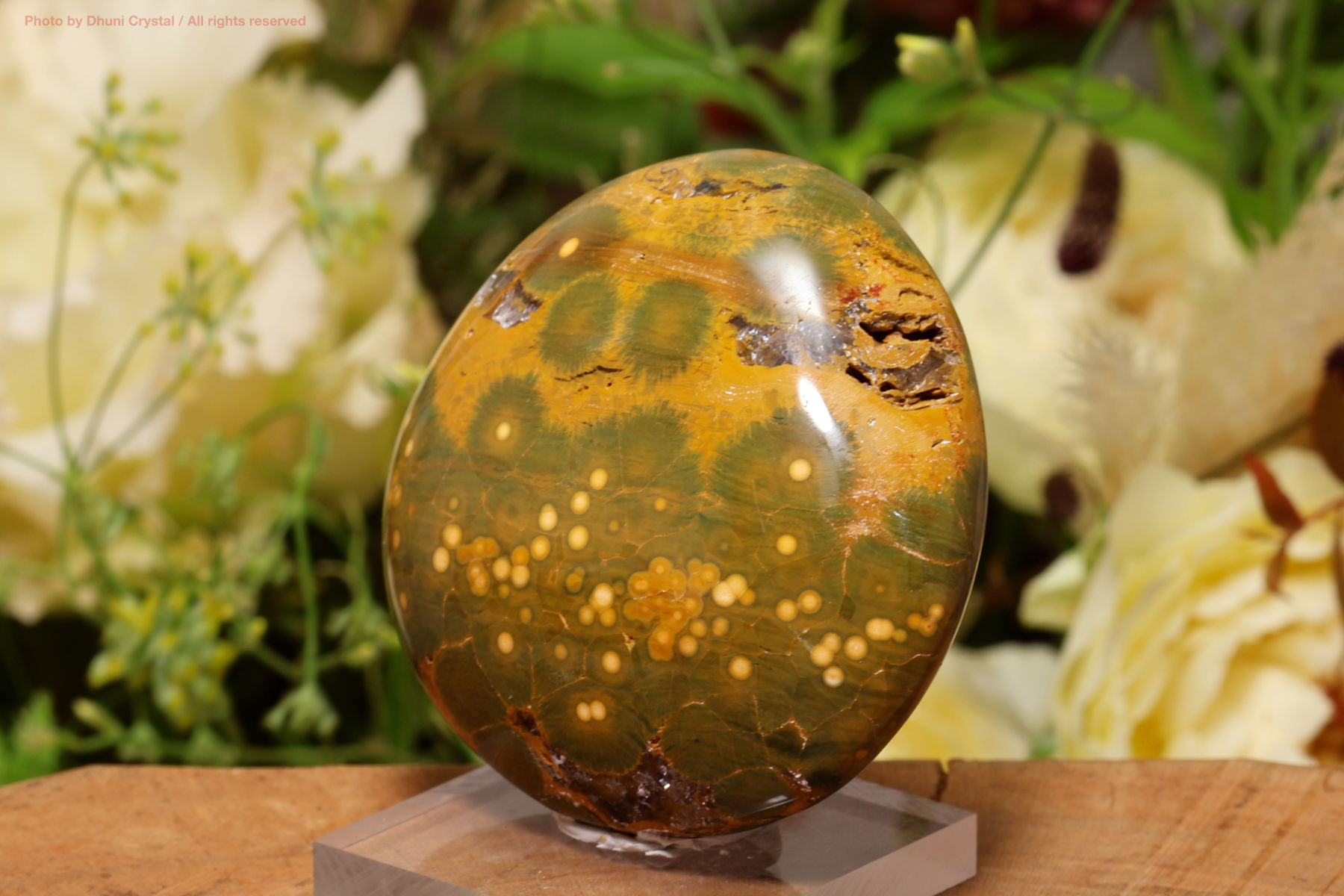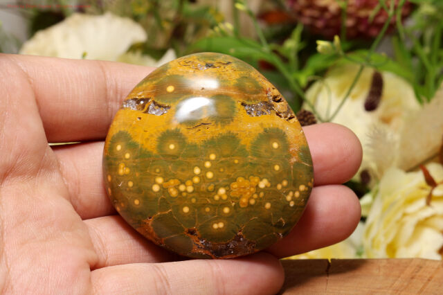 オーシャンジャスパーは火山岩がシリカによって再結晶した、玉模様を持つカルセドニー質の石です。