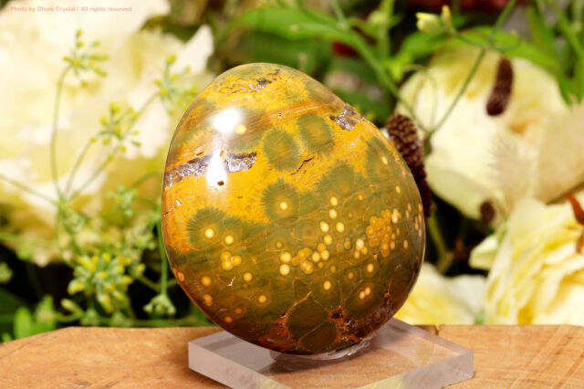 同じくマダガスカル産のカンババ・ジャスパーとは名前や丸模様が似ていますが、全く別系統の火山性岩石であり、鉱物学的には異なる種類に分類されます。