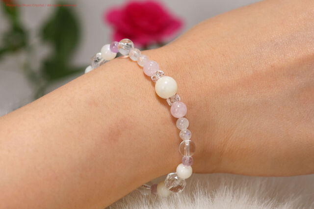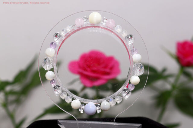 ☆使用されている石:マザーオブパール、ブルーレースアゲート、モルガナイト、アメジスト、レインボームーンストーン、ブラジル水晶