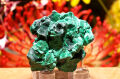 こちらは繊維状で、光の加減で絹のような流れる輝きを放つマラカイト原石です。