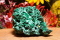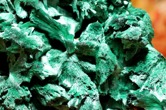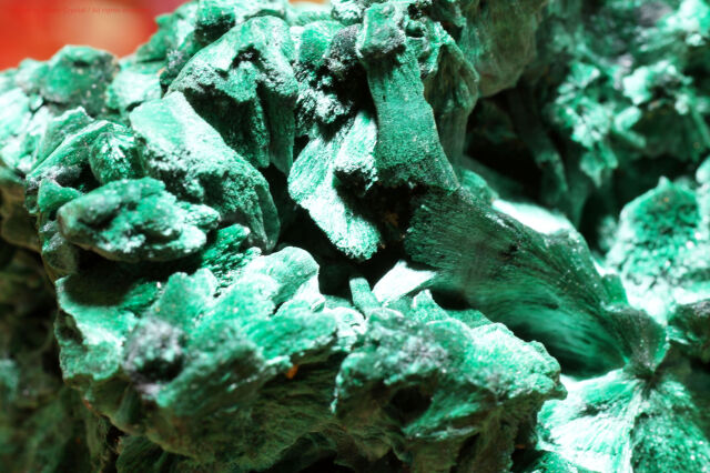 こちらは繊維状で、光の加減で絹のような流れる輝きを放つマラカイト原石です。