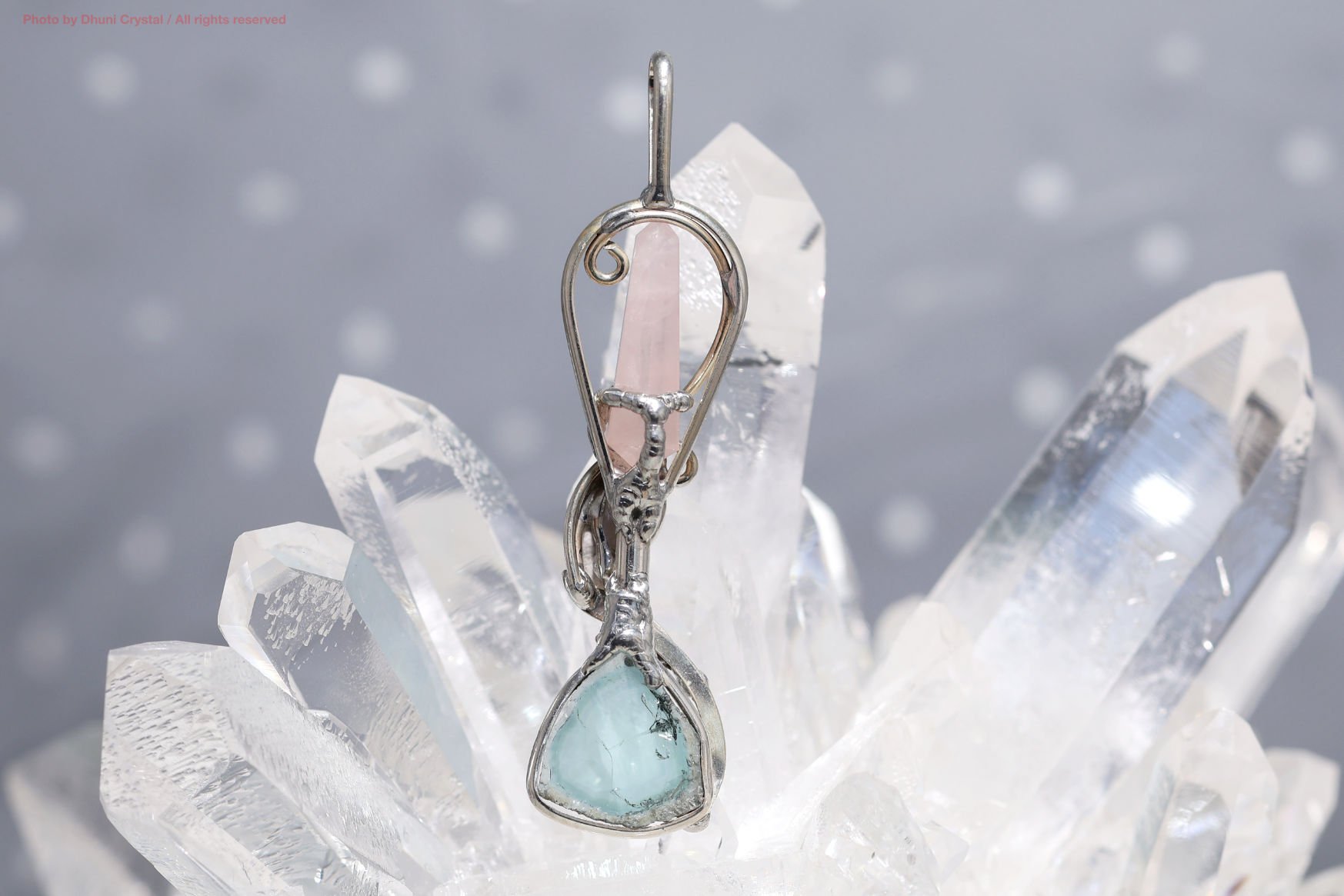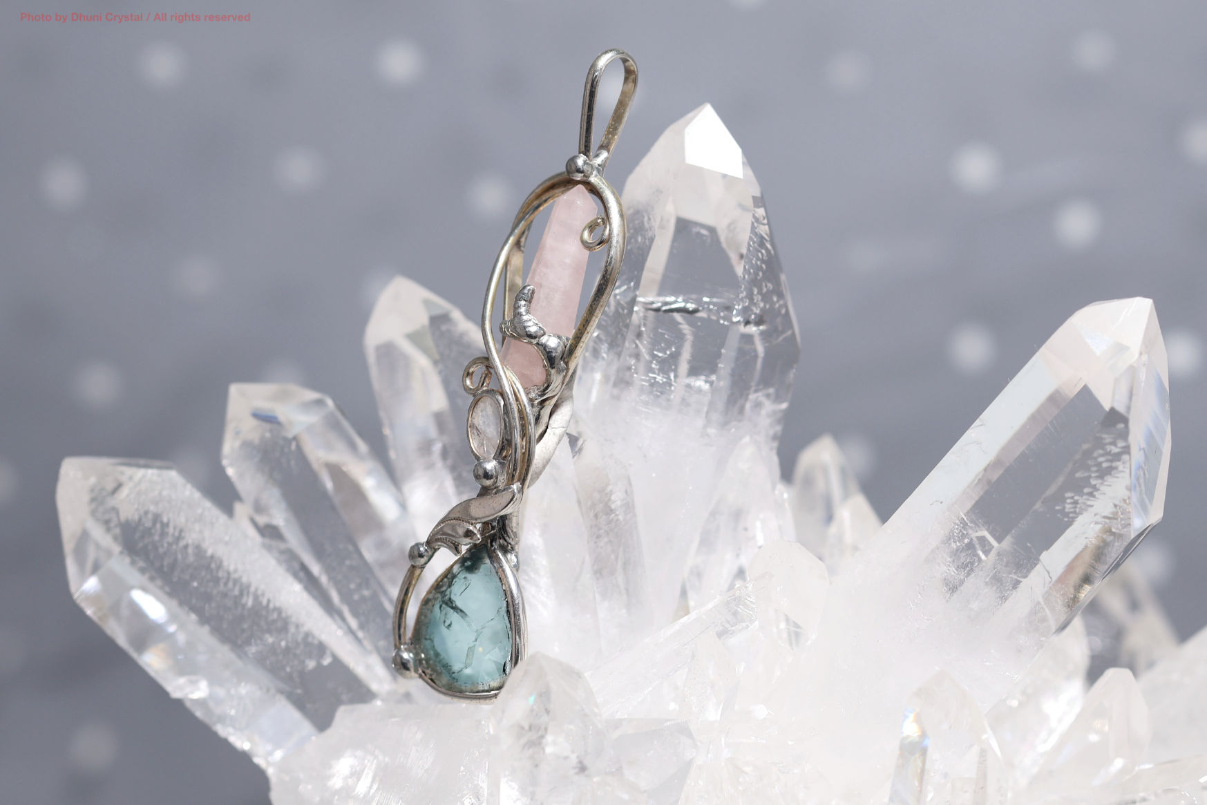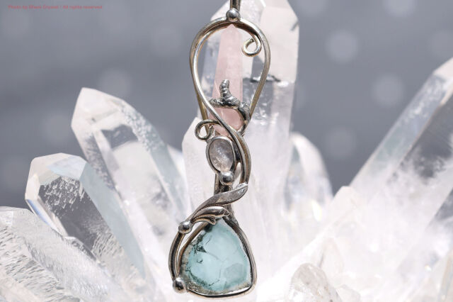 ローズクォーツが自然と女性性を高め、ムーンストーンが直感を目覚めさせ、ブルートルマリンが誠実さと冷静な判断力を与えます。