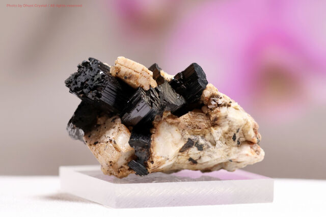 そのシャープな形状と金属光沢を帯びた質感は鉱物好きさんに人気です。ナミビアやロシア、カナダなど限られた地域で産出されます。