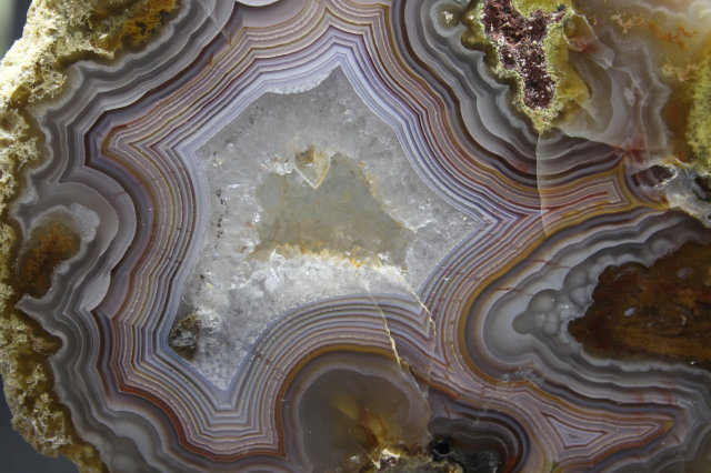 母岩は約3800万年前の生成され、縞模様は細かく褶曲の多い複雑なもので、美しい色彩が数多く見られます。