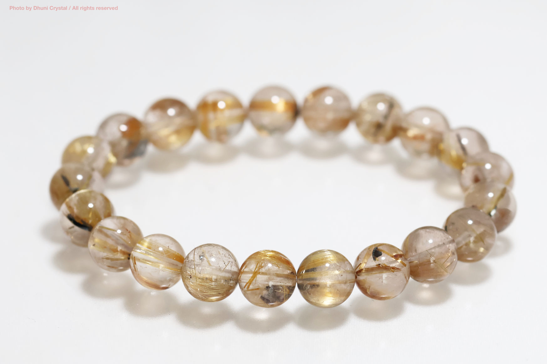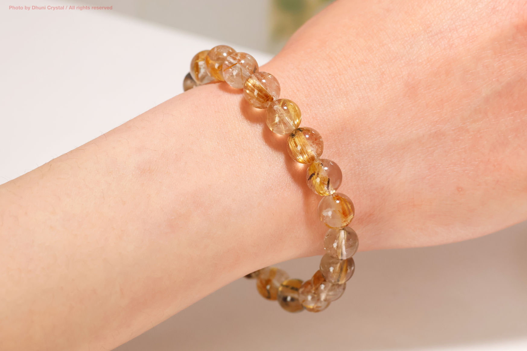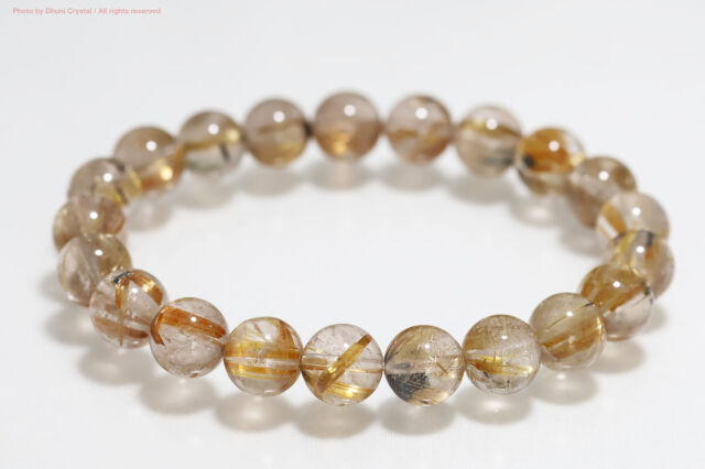 • 一連ブレスレット【ルチルクォーツ】8.5mm珠/手首サイズ14.5cm~15.5cm(FF218)