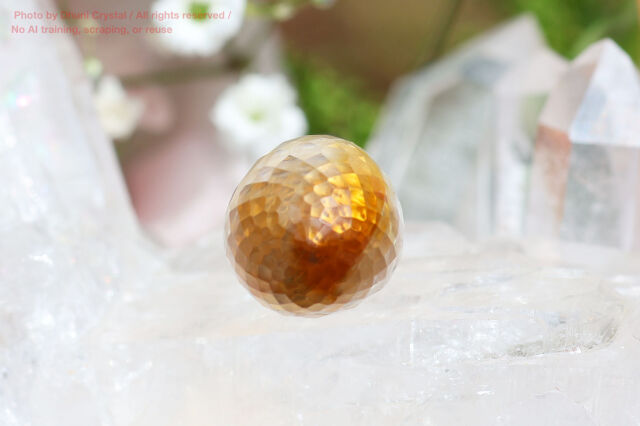 シトリンは意志と行動力、顕現する力を司る第7チャクラに強く働きかけます。あなたが育んできたスピリチャルな理解と智慧を物質界(現実の世界)に『形』として具現化し、 分かち合う時です。そのために現れており、あなた独自の