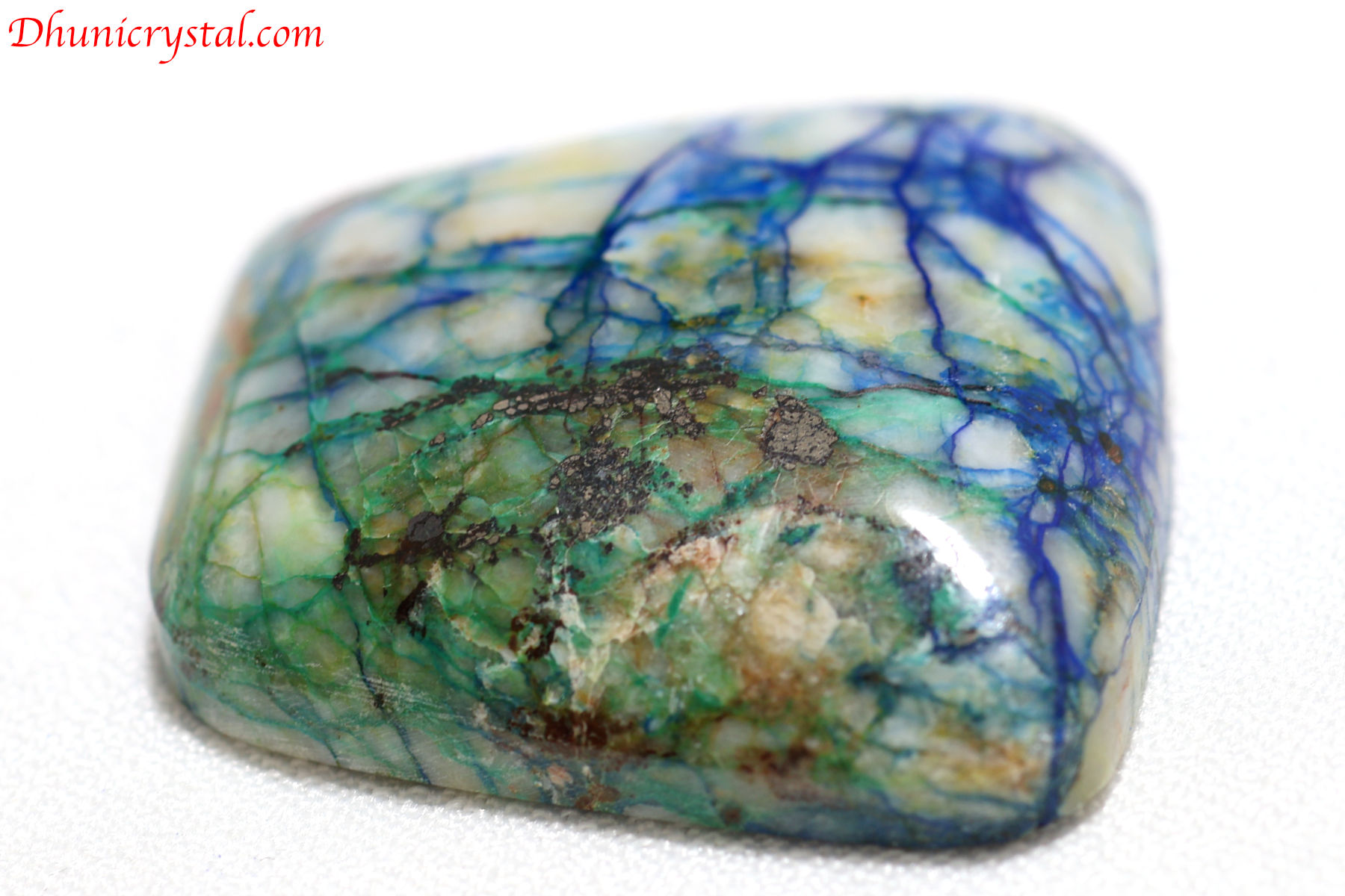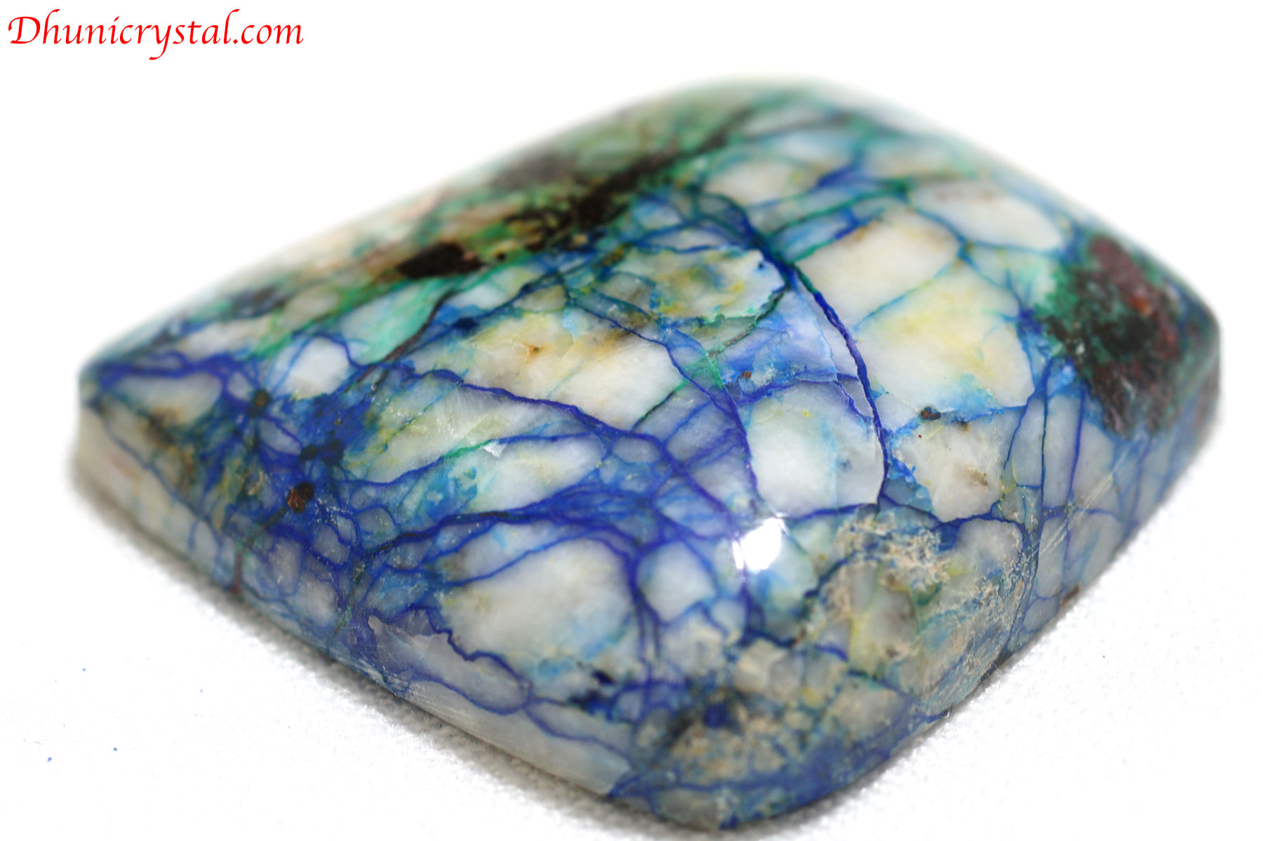 美しい縞模様を呈したアズライトのカボションです。アズライトは美しい藍色をした鉱物で、和名では藍銅鉱と呼ばれる銅の二次鉱物です。