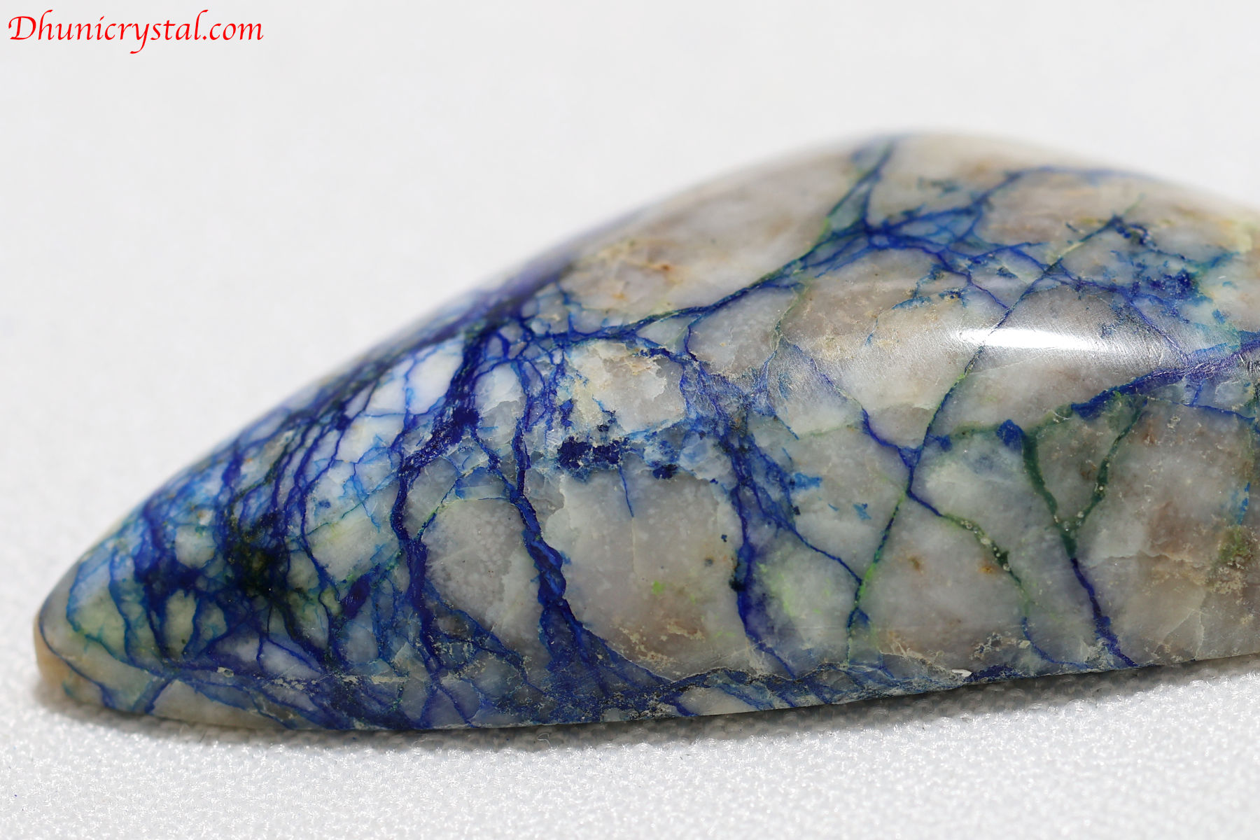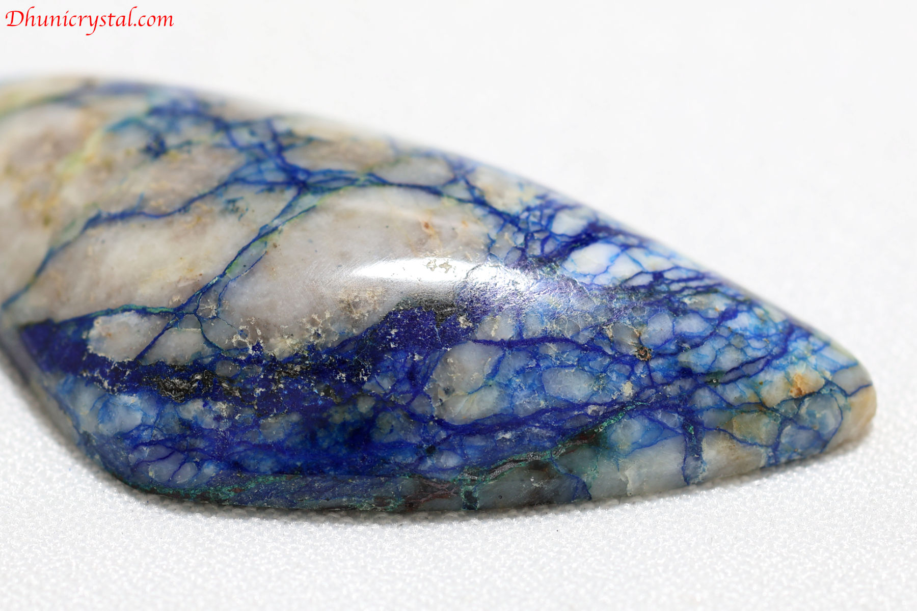 美しい縞模様を呈したアズライトのカボションです。アズライトは美しい藍色をした鉱物で、和名では藍銅鉱と呼ばれる銅の二次鉱物です。