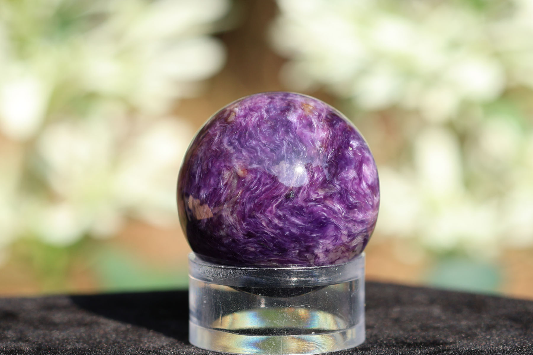 1978年に新鉱物として認定されたチャロアイトは、同じく近年発見されたスギライトと同じように私達人類が新しい紫光線を受け取る段階に入り、 そのエネルギーとエッセンスを真に必要とする時期に現れてきました。