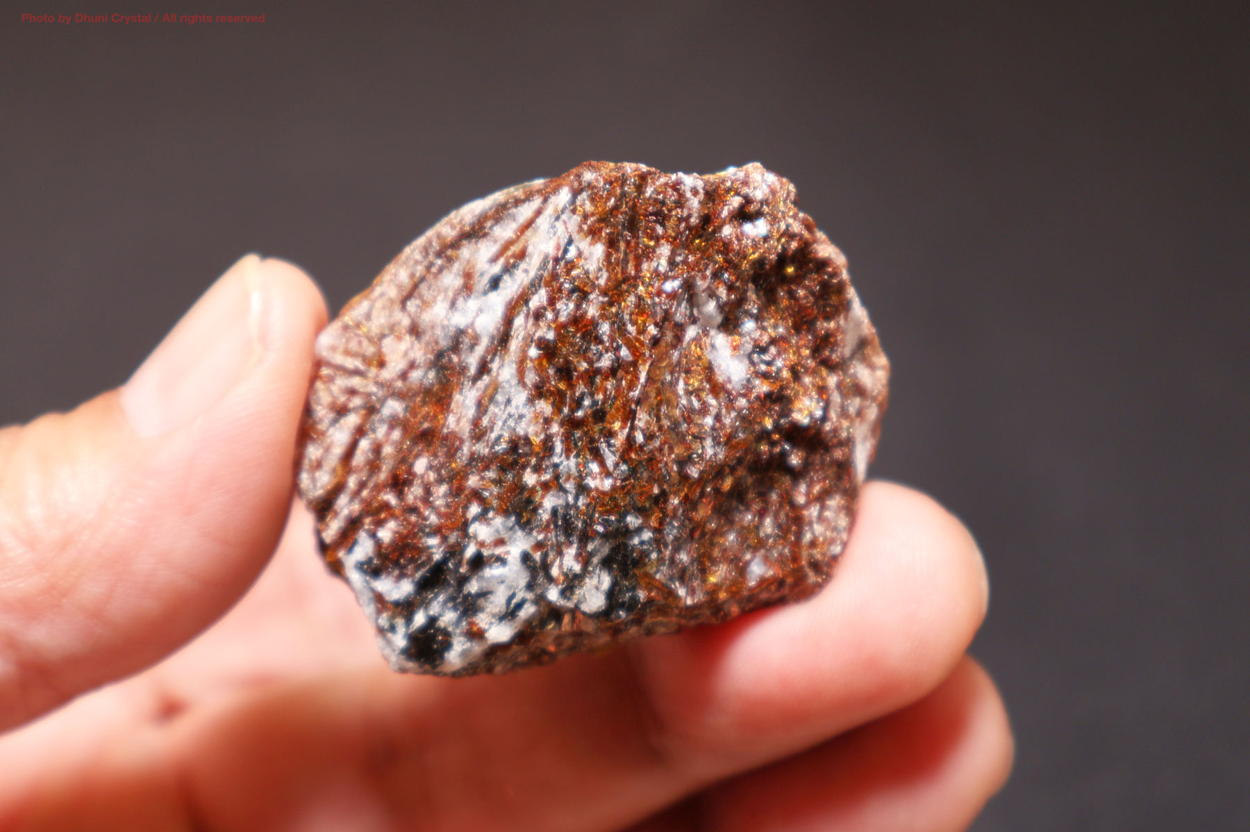 とても珍しい石です。ブロンズ色の鉱物が星のように見える事からギリシャ語で星を意味するasrtroと葉の意味のphyllonに由来して名付けられました。和名は「星葉石」です。