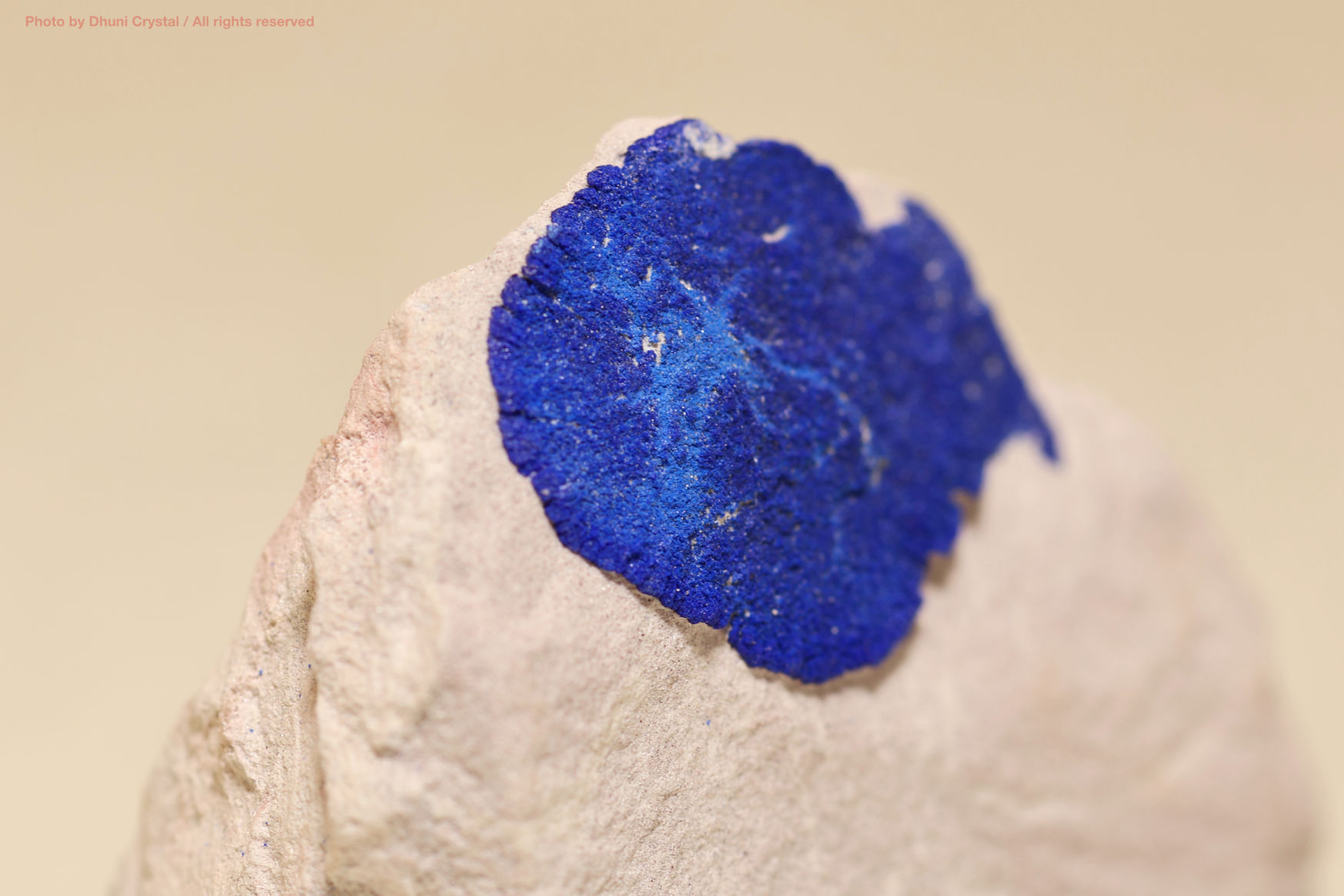 天然で円状に成長した珍しいアズライトです。アズライトは世界中のあちこちで色々な形状で産出されますが、太陽の様にまん丸に結晶しているのはオーストラリア産だけです。