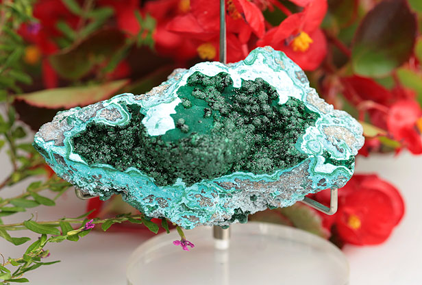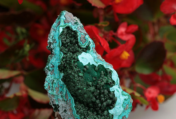 マラカイトの結晶が共生しているクリソコラです。鉱物の不思議な世界に吸い込まれそうになる美しい結晶です。
